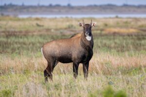 घर की छत पर चढ़ी नीलगाय को चार घंटे के रेस्क्यू के बाद सुरक्षित उतार लिया गया।
